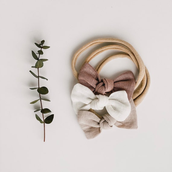 Linen Hair Bows Set Set Of 3 Bows Baby Headbands Neutral Etsy Schweiz