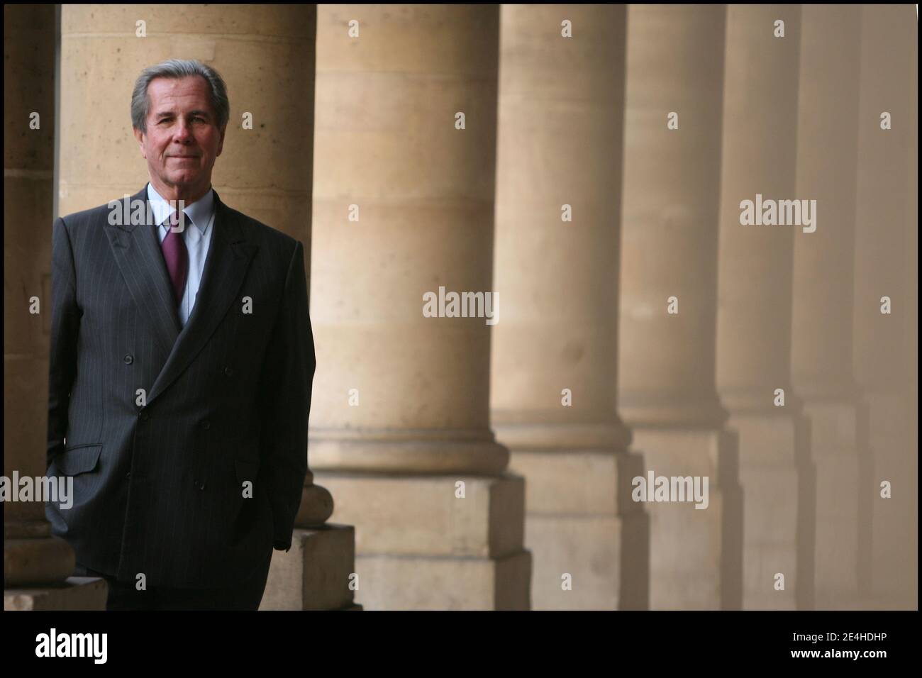 Le President Du Conseil Constitutionnel Jean Louis Debre Pose Au Belagerung Du Conseil Constitutionnel A Paris France Le 14 Decembre 2009 A L Occasion De La Sortie De Son Dernier Roman Policier Mutre A